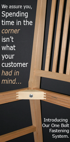 We have developed a revolutionary new system which reduces fastening hardware to one bolt per corner, greatly reducing assembly time and enabling far greater structural strength in your furniture. Further information will be coming soon! (US Patent No. 7677830)